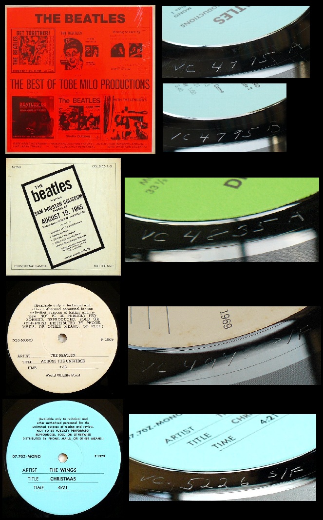 まずTobe Milo名義で「VC-」記号のついた9タイトルを、マトリックス・ナンバー順に並べると次のようになる。(なおプレス時期は前述のTobe Milo Archivesに掲載されているものである)