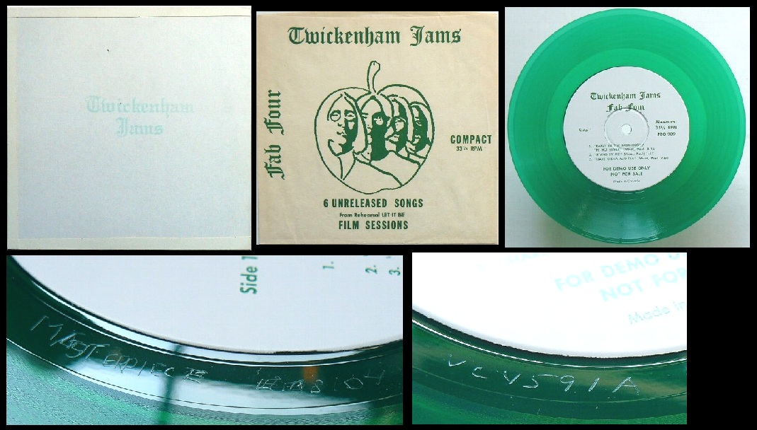 Twickenham Jams (EP, TW1)とほぼ同時期にWatching Rainbows (EP, WR1)が発売されているわけだが、これらには、1969年1月のGet Back Session、いわゆるNagllaテープから収録されているが、どちらも1月8日の収録なのである。つまり同じマスターから作られ、この2枚においては収録内容が重複しないように配慮されているのである。WizardoグループとTobe Miloの最初の接点(参照→セクション14「複雑で、歪な関係性」L.A. MARRIOTT HOTEL【マリオット・ホテル】)から、取引と、ちょっとしたトラブル(参照→セクション13「In Person – Sam Houston Coliseum」と「Live From The Sam Houston Colosseum」)そして、その後Tobe Miloから、その時点では未発表だったGet Back Sessionのサンプル・テープを使用した「Man Of The Decade(ToMi04)」が発売され、その数年後にWizardoグループのおそらくは「P氏」と思われる人物から、それらをマテリアルとした「Vegemite」(オーストラリア輸出向け、アメリカ国内ではSweet Apple Trax Ⅲ)が制作され、「Get Back Journal」へと繋がってい行く事実を考えると、Twickenham JamsもTobe Miloによるものだった可能性は高い。さらにここからディスク・コピーされSmilin’EarsによるTwickenham Jams (LP, Smil1)は作られたわけであるが、その他のSmilin’ Earsのブートレッグに収録されたコンテンツもTobe Miloのブートレッグからのコピーであり、Beatles '66 (LP, Smil4)に至っては、Tobe Milo Productionとプリントされたステッカーまで貼られていた。これはSmilin' Earsが同一のルートからブートレッグを購入し、単純にディスク・コピーをしていたと考えられ、いっそう、Twickenham JamsがTobe Miloによるものだった可能性が高まる。