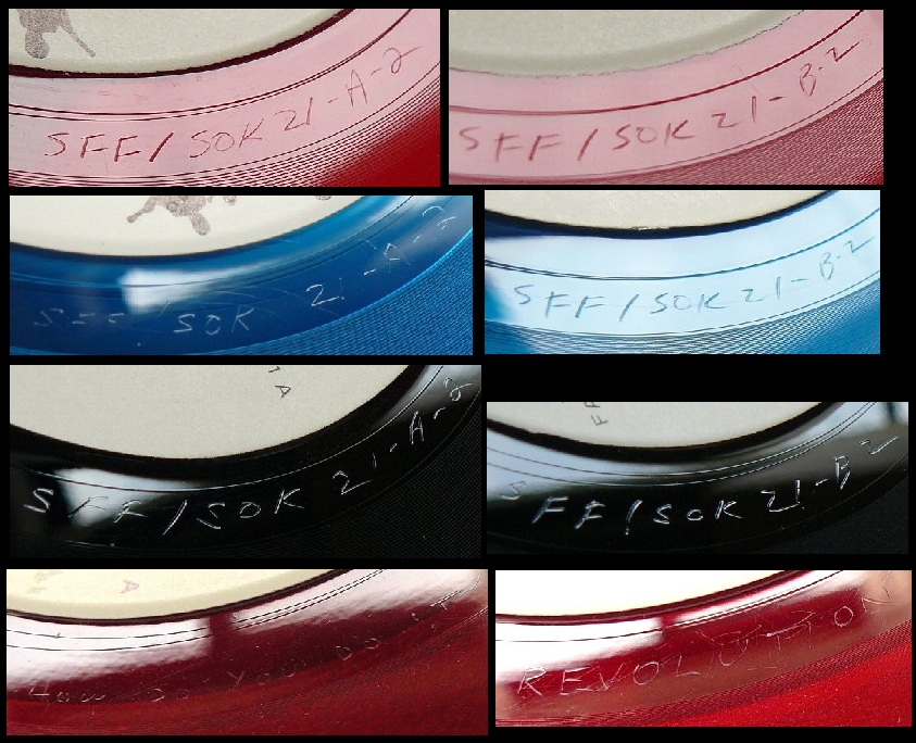 ↓写真 同じピクチャー・スリーブ、そしてType Aのマトリックスで、複数の色が入ったマーブル様のカラー盤もプレスされた。(どちらも未リスト)